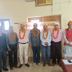 चुनाव अधिकारी शर्मा के निर्देशानुसार समिति की नई कार्यकारिणी के चुनाव की घोषणा की गयी। बैठक में सुरेश जोशी ने अध्यक्ष पद के लिए डीके तिवारी के नाम का प्रस्ताव रखा। श्यामलाल कश्यप व वीरेन्द्र कुमार मिश्रा ने तिवारी के नाम का अनुमोदन किया। जबकि उपाध्यक्ष पद पर अम्वादत्त मंदोली, महामंत्री पद पर हरिओम सिंह, खजांची पद पर रमेश चंद्र विष्ट, सचिव पद पर ग्रीश जोशी व संचारप्रभारी पद के लिए महेश चन्द्र शर्मा चुने गए।