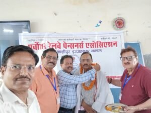 काशीपुर। पूर्वोत्तर रेलवे पेंशनर्स एसोसिशन काशीपुर शाखा की मासिक बैठक रेलवे स्कूल प्रांगण में आयोजित की गई बैठक की अध्यक्षता रेलवे मजदूर यूनियन के पूर्व अध्यक्ष सुरेश शर्मा ने की इस अवसर पर पेंशनर्स एसोसिशन के अध्यक्ष सतपाल गुप्ता, सेक्रेट्री एस एस सिन्हा, कोषाध्यक्ष राजीव पाल, सुरेश शर्मा, संजय राय ने आवश्यक जानकारी के साथ साथ संगठन संबंधी विचार व्यक्त किए। पेंशनर्स एसोसिशन की और से जुलाई माह में पड़ने वाले 8 पेंशनर्स सुरेश शर्मा, राजीव पाल, शिवप्रसाद, रामेश्वर आदि का जन्मदिन तिलक लगाकर मिठाई खिलाकर तथा माला, सम्मान पटका पहनाकर, तथा बधाई पत्र देकर धूमधाम से मनाया गया।